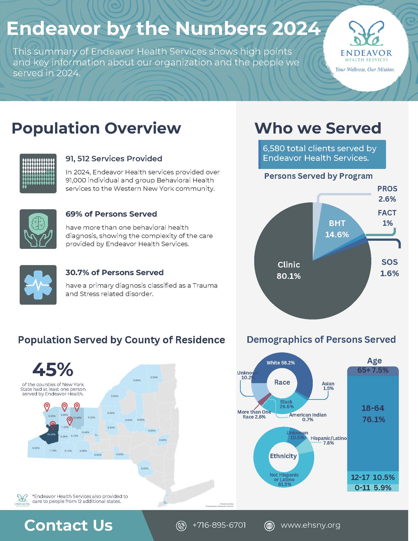 Endeavor Health Services is a private, not-for-profit organization committed to promoting wellness and recovery through accessible, person-centered behavioral health care. Serving Western New York and Rochester, we offer mental health and substance use treatment, education, and support. Founded in 1972 as Mid-Erie Mental Health Services, Endeavor has grown significantly over the past five decades and rebranded in 2017 to reflect our commitment to integrated, evidence-based care. Today, we are proud to be one of the 13 original demonstration Certified Community Behavioral Health Clinics (CCBHCs) in New York State. This designation recognizes our ability to deliver coordinated, high-quality services that address the full scope of an individual’s behavioral health needs.